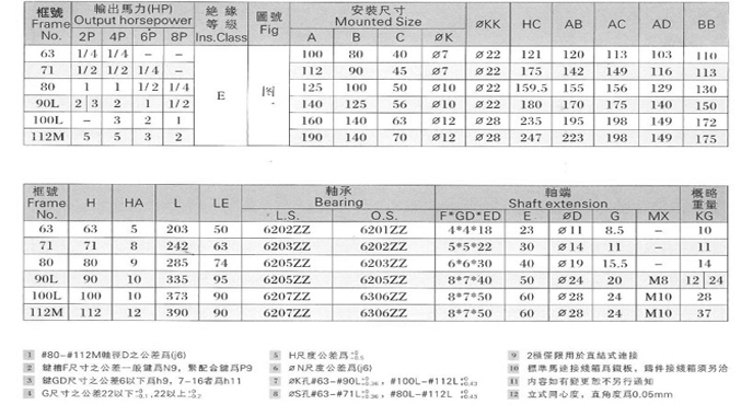 特点:1采用E级绝缘及高级导电材料,温升低,寿命长,性能优越 2外型轻巧,坚固耐用3优越的设计,噪音低,运转安静 4 启动转矩大,惯性小,运转顺畅,省电效果较佳,马达强劲有力。5特性合乎国家CNS及各项国际认证等标准。6标准IEC公制尺寸,具有互换性,适合各界需要